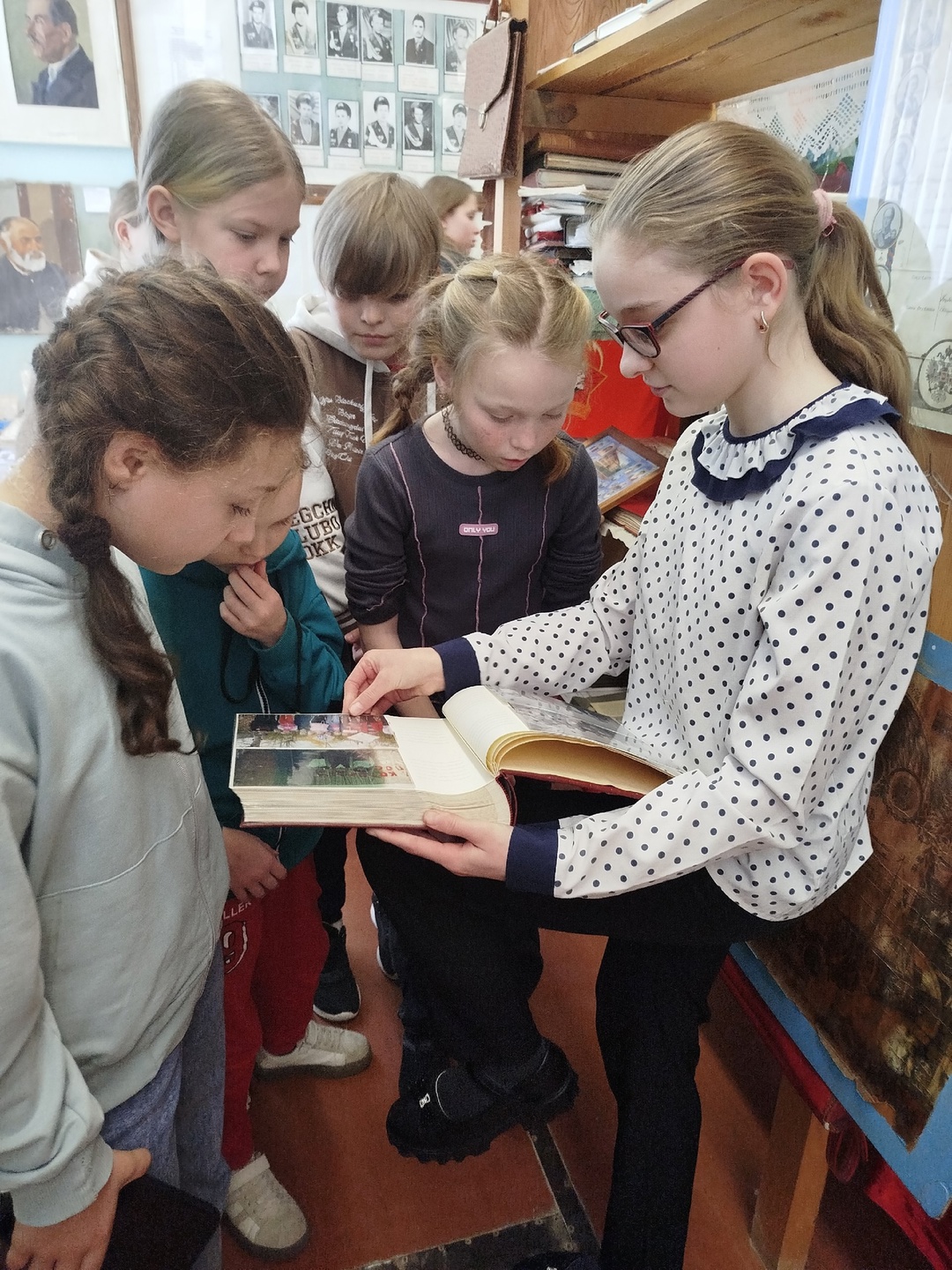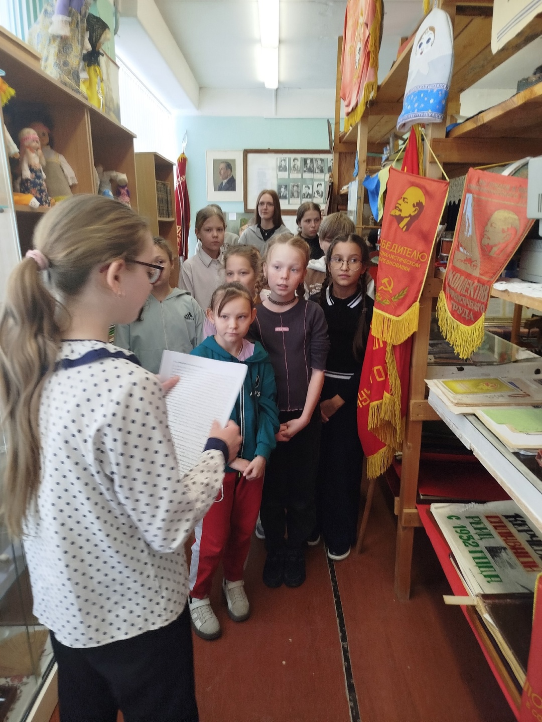 Перед началом весенних каникул в школьном этнографическом музее прошли краеведческие занятия для учащихся. Обзорную экскурсию по фондам музея провели ученицы 7 класса: Галинова Елена, Галинова Мария и Бабина Ксения.