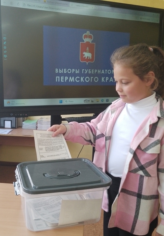 – Это позволяет ребятам получить представление о том, как устроены выборы, что значит их голос, почему важно не забывать о закрепленном в Конституции праве граждан на участие в выборах. Основная цель этих занятий – формирование у детей гражданской позиции, а также чувства ответственности за свое будущее и будущее родного края. Было бы хорошо, чтобы это своим примером подтвердили взрослые – мамы, папы, бабушки, дедушки – приняв участие в предстоящих выборах губернатора Пермского края 12,13,14 сентября.