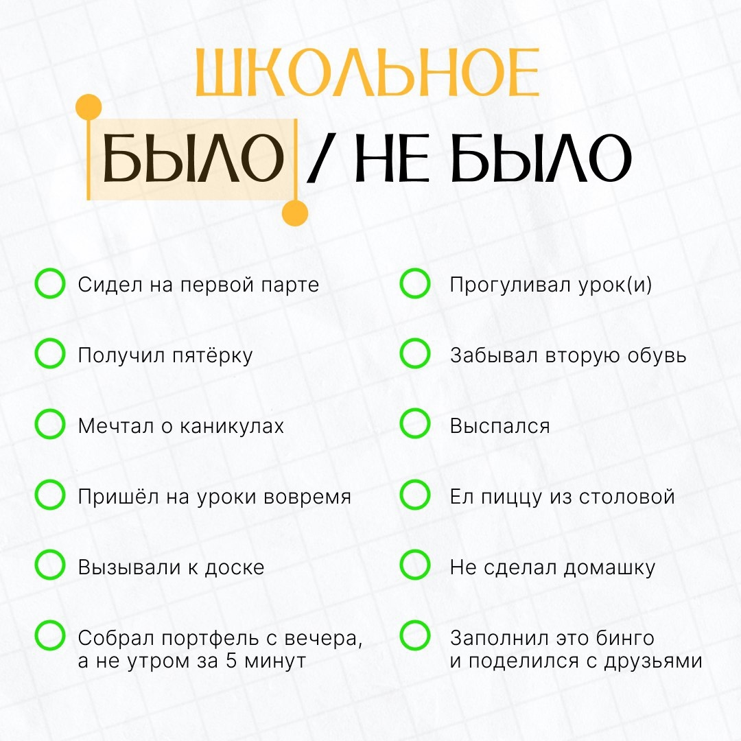 Делись своими школьными успехами с помощью этого бинго в комментариях — посмотрим, что удалось сделать за первый месяц учёбы