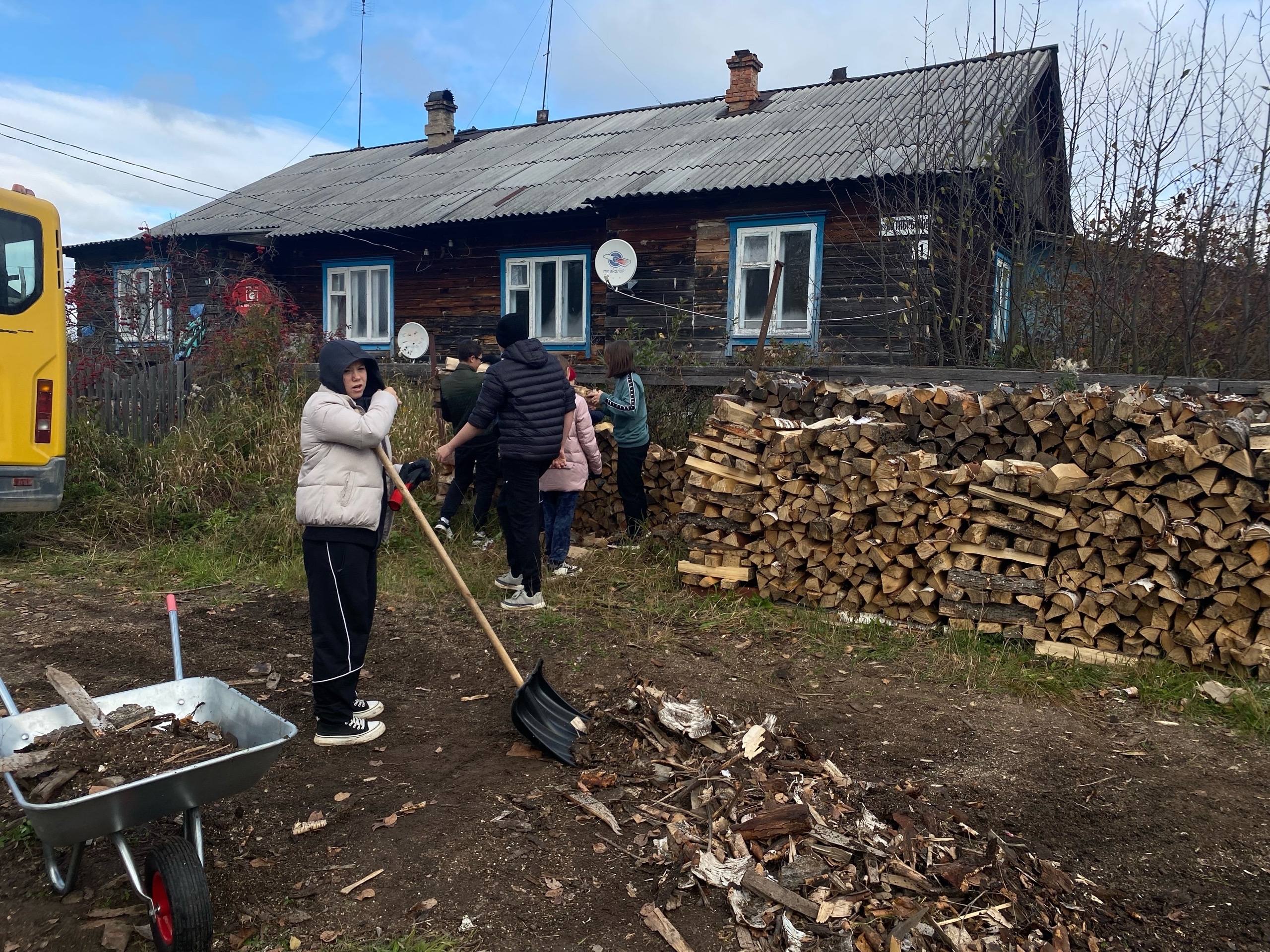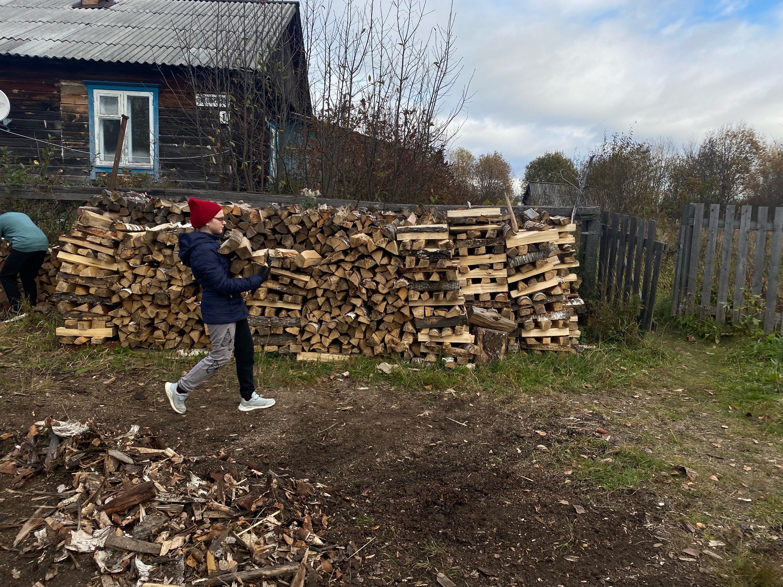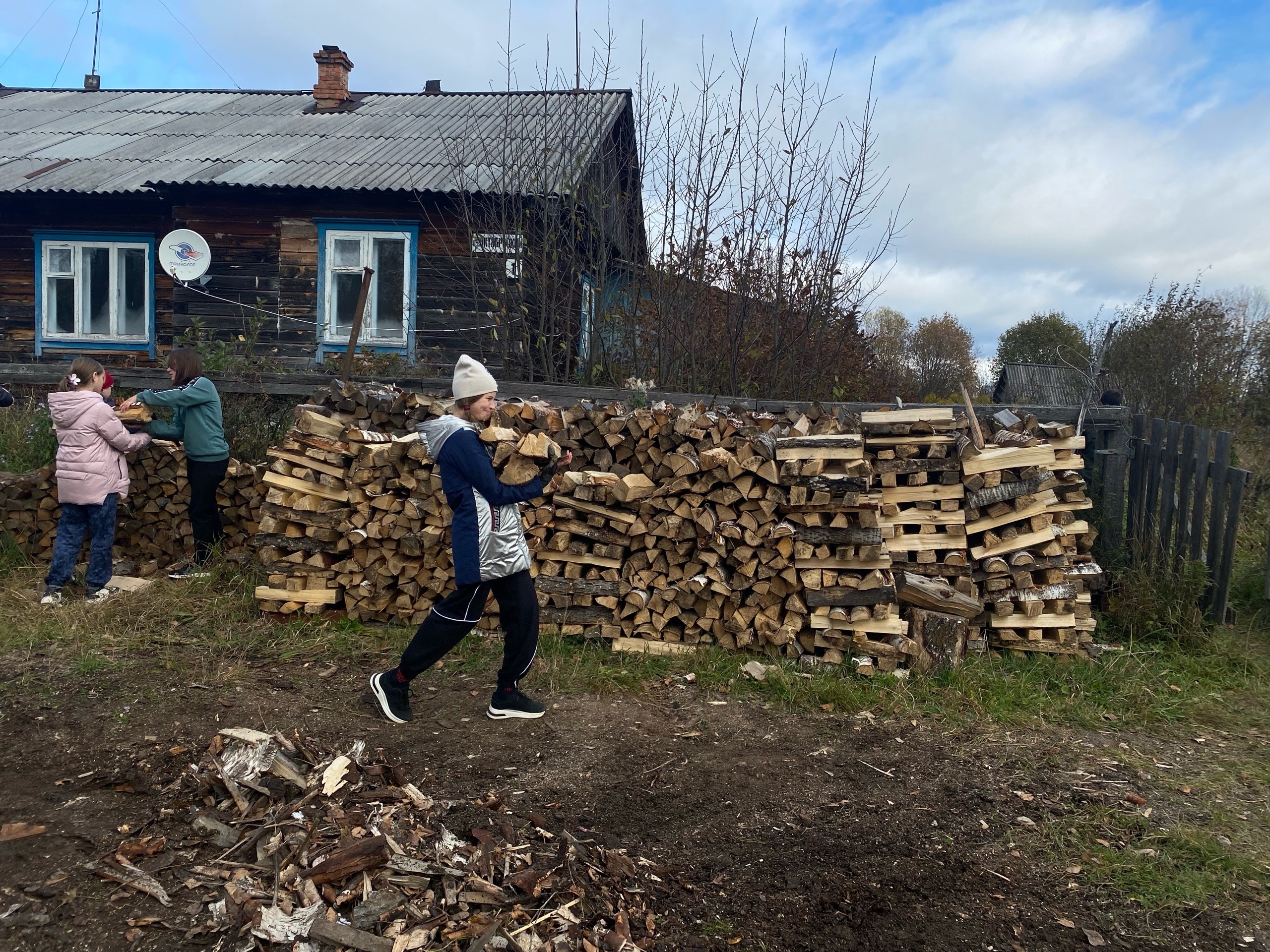 Волонтёрский отряд из учеников 8 класса помог Надежде Ивановне сложить дрова у дома.