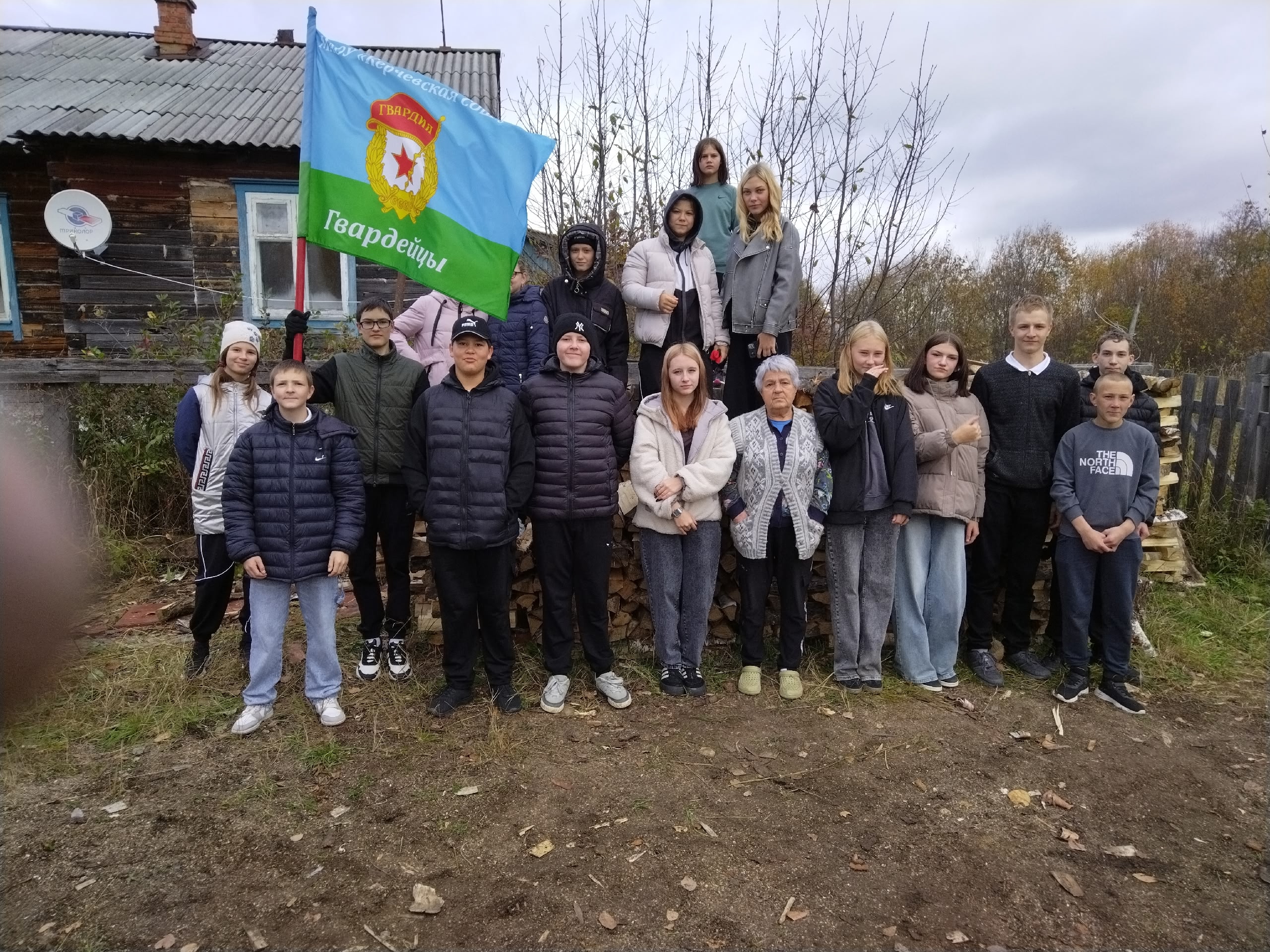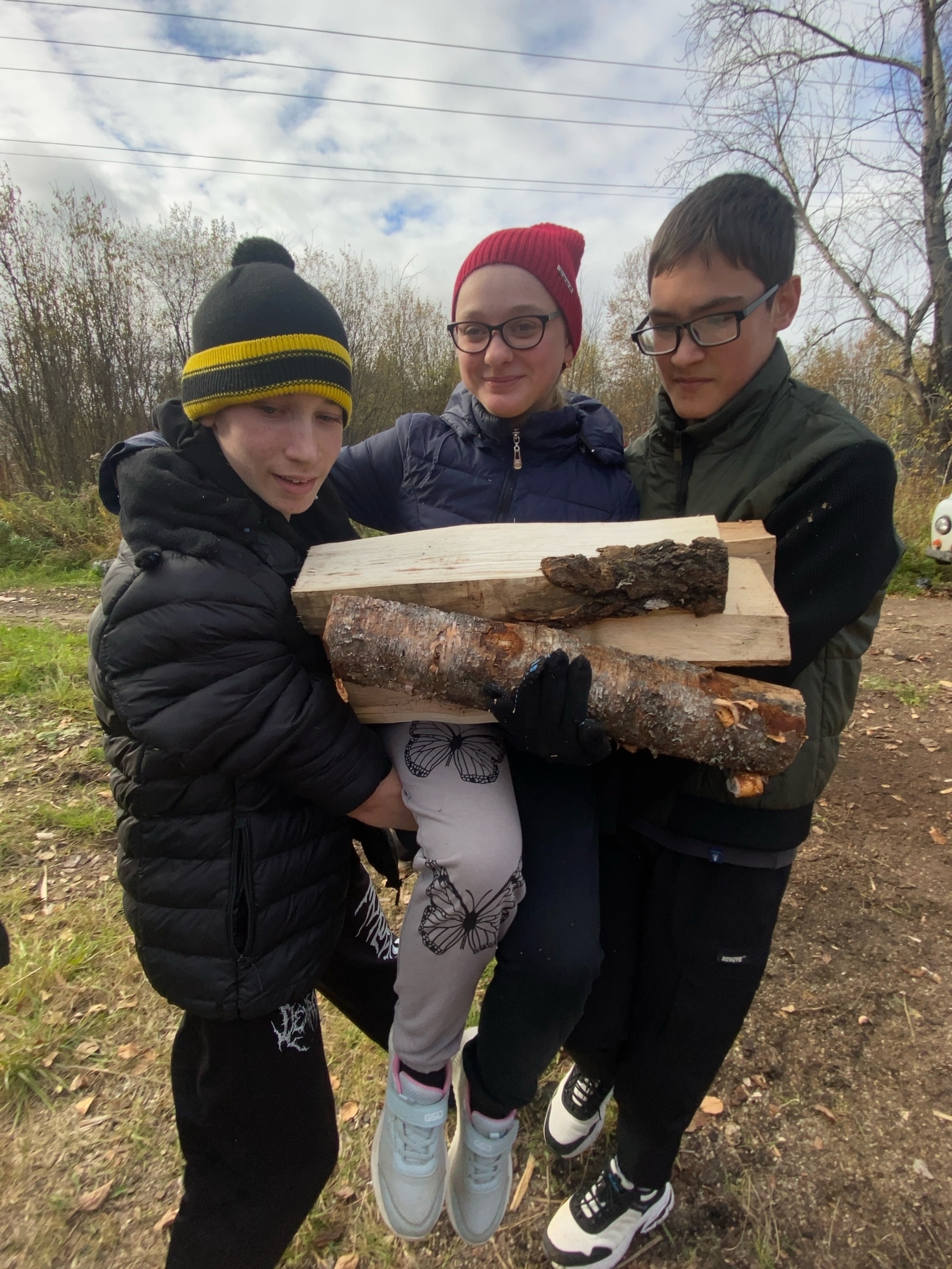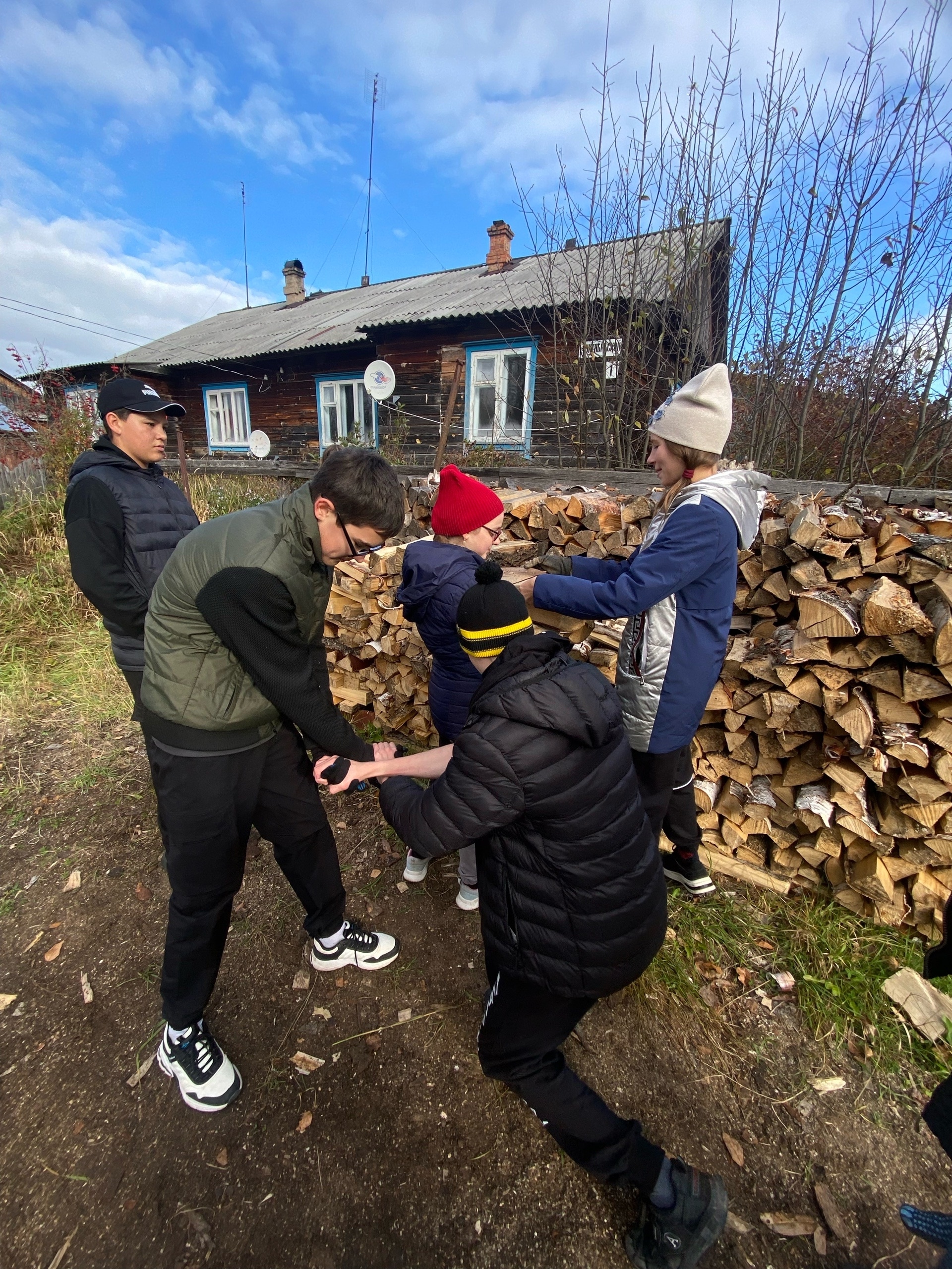Волонтёрский отряд из учеников 8 класса помог Надежде Ивановне сложить дрова у дома.