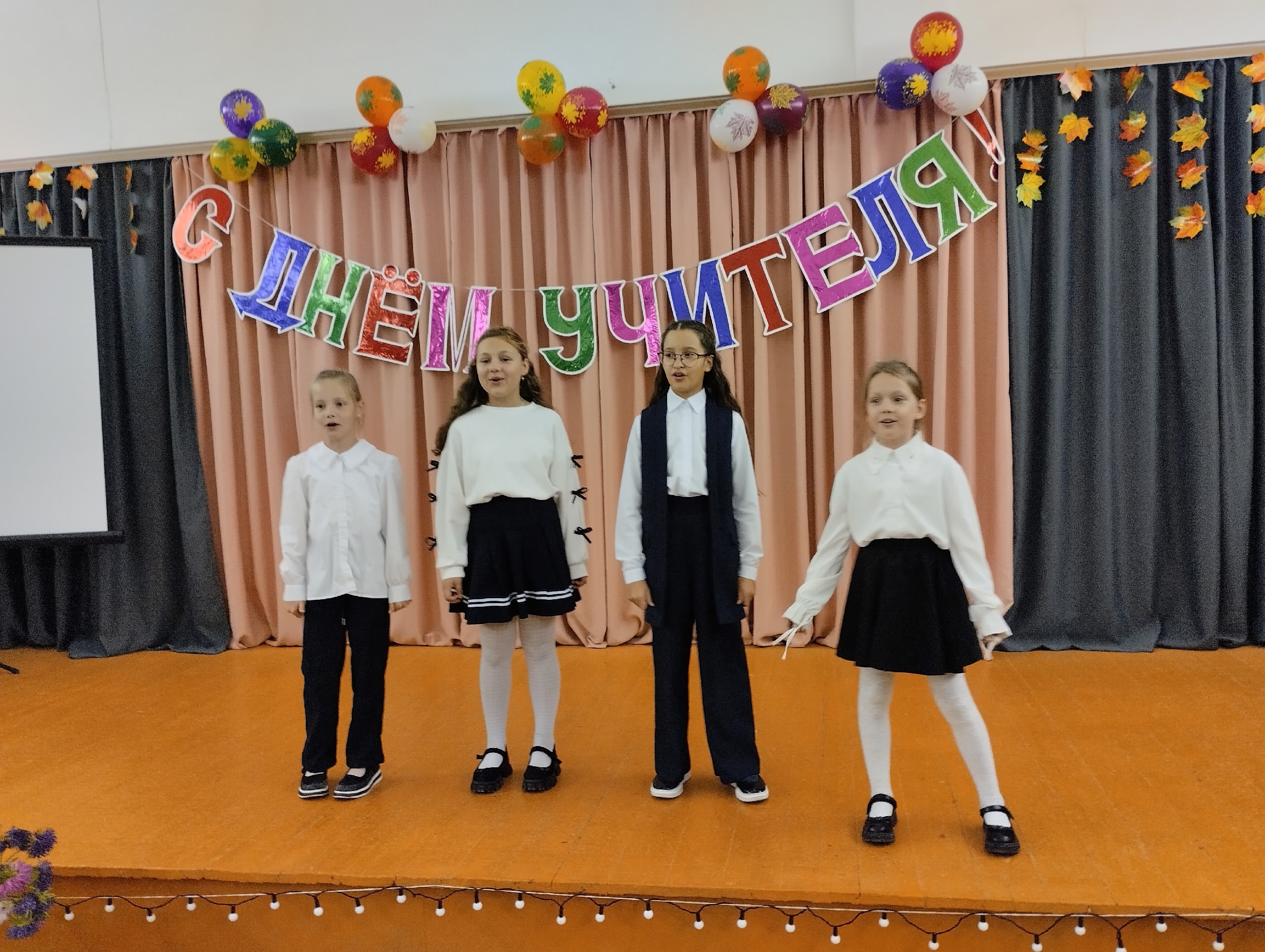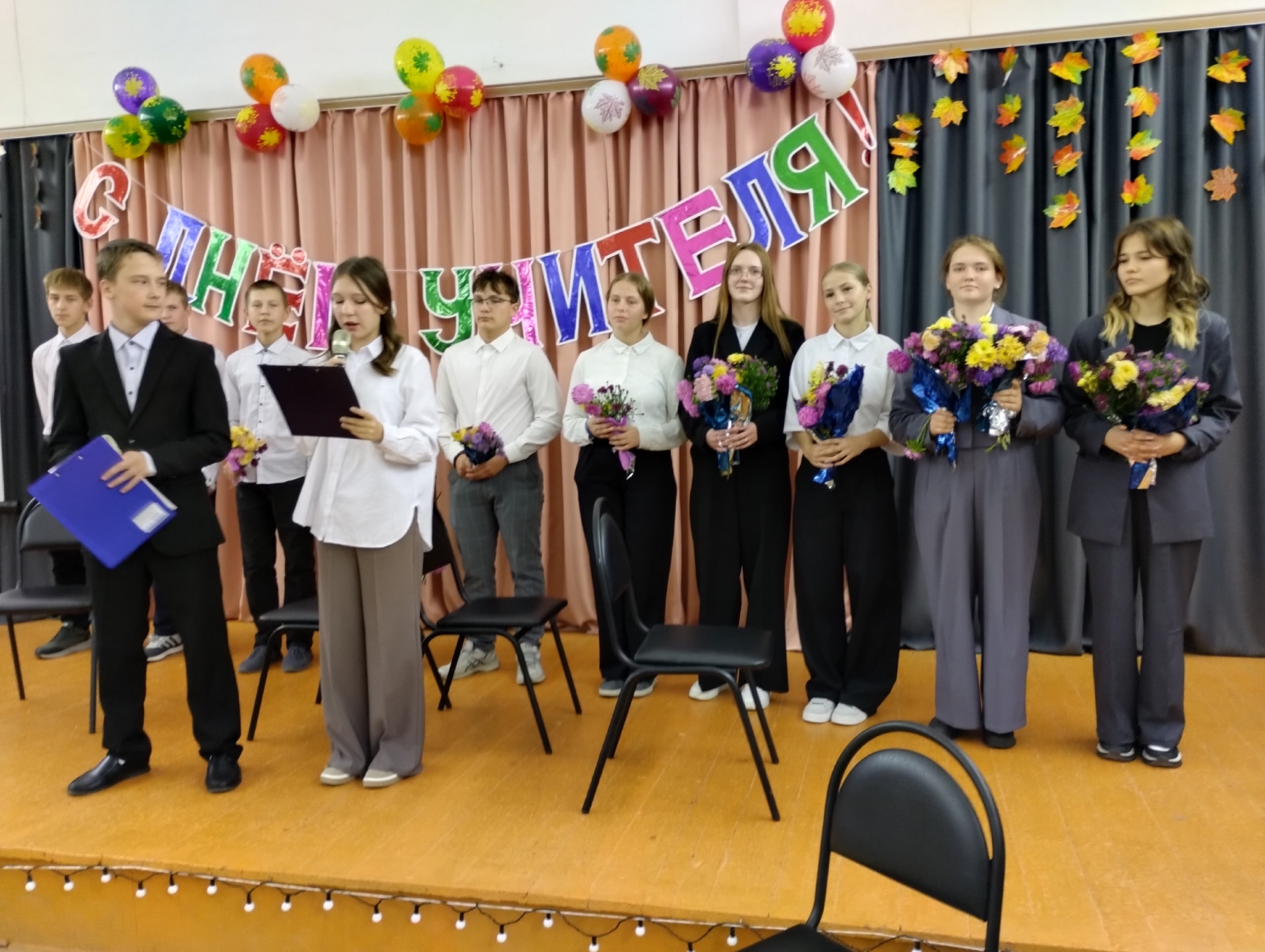 В этот праздничный день в нашей школе был проведён День Самоуправления, в завершении которого был организован праздничный концерт, посвященный Дню Учителя. В нём приняли участие учащиеся 1-9 классов. Поздравили только вступившие на школьный путь первоклашки и ребята, у которых этот год последний в нашей школе, выпускники 9 класса.