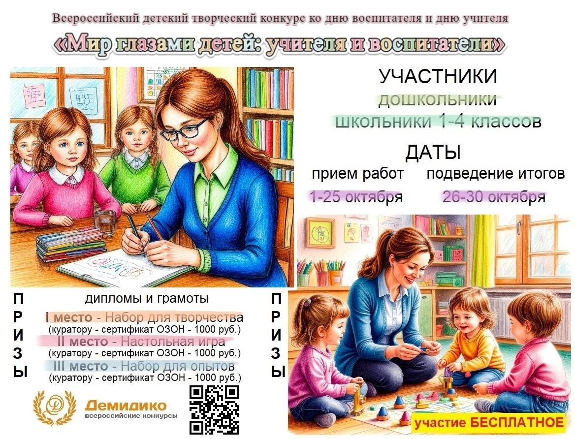 Приглашаем дошкольников и учащихся 1-4 классов принять участие в творческом конкурсе «Мир глазами детей: учителя и воспитатели», посвящённому двум праздникам — Дню воспитателя и всех дошкольных работников и Дню учителя!