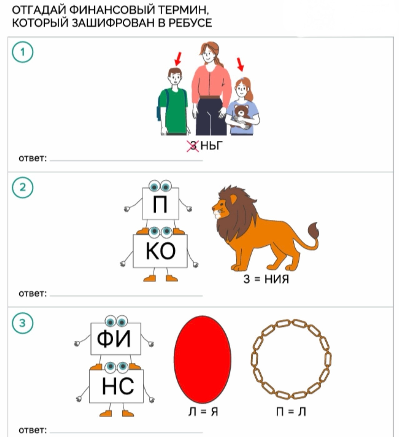 Ученики отгадывали финансовые термины, которые были зашифрованы в ребусах; разгадывали кроссворд о страховании; раскрашивали картинки и выполняли задания по теме накопления. После мероприятия ученики прошли тест и получили сертификаты.