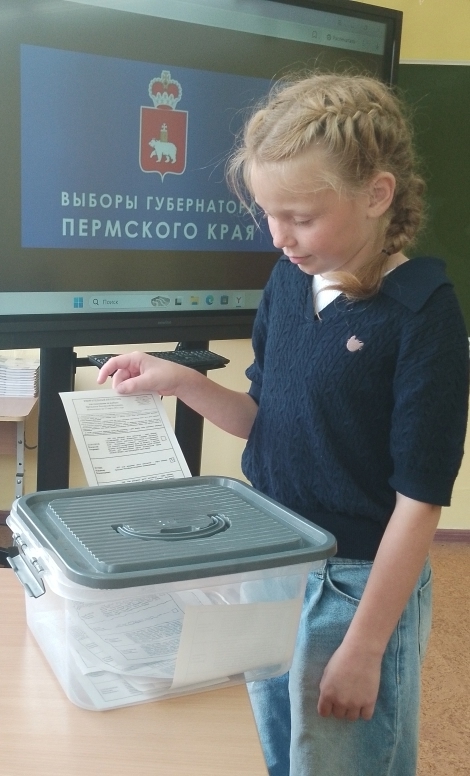 – Это позволяет ребятам получить представление о том, как устроены выборы, что значит их голос, почему важно не забывать о закрепленном в Конституции праве граждан на участие в выборах. Основная цель этих занятий – формирование у детей гражданской позиции, а также чувства ответственности за свое будущее и будущее родного края. Было бы хорошо, чтобы это своим примером подтвердили взрослые – мамы, папы, бабушки, дедушки – приняв участие в предстоящих выборах губернатора Пермского края 12,13,14 сентября.